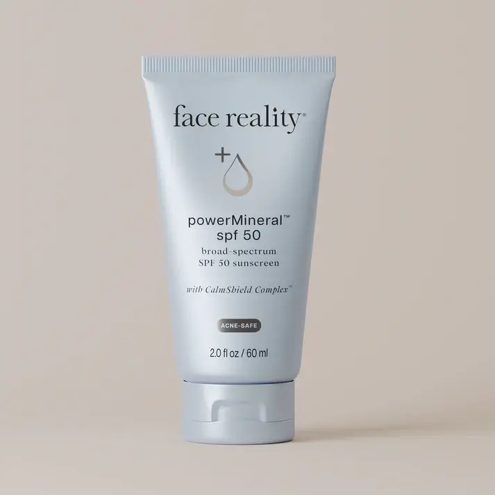 POWERMINERAL™ SPF 50 from Face Reality Skincare is new and improved broad-spectrum SPF 50 protection. POWERMINERAL™ SPF 50 is a 100% mineral formula featuring the CalmShield Complex™ designed to soothe and supports the skin barrier while also adding hydration. As always this Acne-safe and lightweight formula enhances and protects your skin clearing journey, while supporting your long-term barrier health.